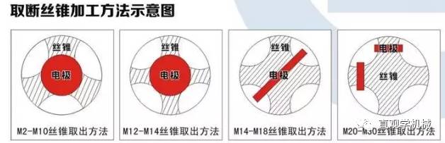 17、直接用比断入物小的电极,用电火花机床打。(缺点:a、对大型工件无用,无法放入电火花机床工作台;b、耗时;c、太深时容易积碳,打不下去。)