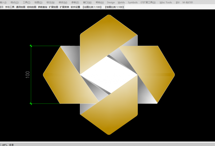 设计该标志,要求尺寸100,作出dwg图,并标出完成图形所需尺寸标注。